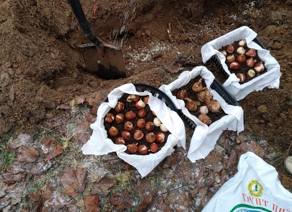 Mnoho milovníků tulipánů je zasadí do zakoupených plastových nádob, zasype je zeminou a zaryje do záhonu.