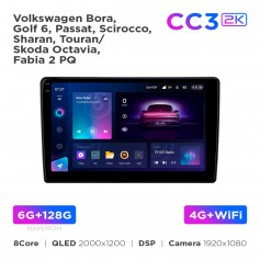 Kompatibilita s automobilem: Volkswagen Bora/Golf 6/Passat/Scirocco/Sharan/Touran, Škoda Octavia/Fabia 2 PQ Verze zařízení: CC3 2k RAM/ROM: 6+128 Gb Procesor: 8 jader 2.0 GHz 64 bit 2*Cortex A75 + 6 úhlopříčka A55 in 12 ARM10.36Cortex. 2000×1200 Typ obrazovky: QLED + 2.5D