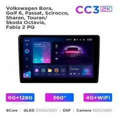 Kompatibilita s automobilem: Volkswagen Bora/Golf 6/Passat/Scirocco/Sharan/Touran, Škoda Octavia/Fabia 2 PQ Verze zařízení: CC3 2k RAM/ROM: 6+128 Gb 360° Procesor: 8 jader 2.0 GHz 64 bit 2*Cortex 75×6 ARM55 diagonální 12 palců Rozlišení displeje: 10.36 × 2000 Typ obrazovky: QLED + 1200D